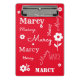 Minicarpeta De Pinza Rojo con flores blancas, miniPortapapeles personal