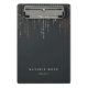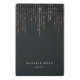 El portapapeles de moda presenta dos líneas de texto personalizado con letras blancas clásicas en un fondo negro suave y rico con cadenas verticales de luces falsas de Relieve metalizado de oro rosa en cascada desde la parte superior. El diseño se repite al revés. Tenga en cuenta que este portapapeles es un tamaño pequeño; versión de tamaño completo también disponible en nuestra colección Rosa Gold Marquee.