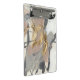 Golden Rubor II de Jennifer Goldberger. Presenta tonos grises y rosados silenciosos que se mezclan en un fondo neutro. El Relieve metalizado dorado se acentúa sobre el diseño.