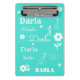 Minicarpeta De Pinza Turquesa con flores blancas, personalizadas