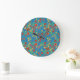 Reloj de pared acrílico redondo de moda, con un patrón de miniimpresión floral de bonito sobre un fondo verde azulado. Este patrón de color de papel pintado a mano, que forma parte de la colección "Granny Print" de Posh & Painterly, se puede ajustar fácilmente para que se ajuste a cualquier reloj de pared.