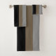 wide vertical stripes in light dove gray, warm taupe, and pure black. Ultra-minimal retro-modern look with only three sophisticated neutral tones.