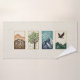 A calm and balanced set of minimalist nature illustrations featuring mountains, a tree, flowing wind, and a bird in flight. Designed in a simple block-style composition with earthy tones, this artwork captures the beauty and harmony of the natural world in a clean and modern way.