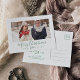Esta minimalista tarjeta postal de vacaciones de Feliz Navidad con foto de guardar la fecha en verde hace el perfecto saludo simple de vacaciones para una pareja comprometida. El diseño cuenta con tipografía clásica verde y blanca combinada con una fuente de escritura rústica pero elegante con estilo de letra a mano.