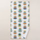 El conjunto de toallas incluye un lavabo azul claro, una toalla azul oscuro y una toalla de baño de diseño moderno de mediados de siglo de semicírculos apilados en tres colores retro sobre un campo de blanco. ¿Quieres el mismo diseño con colores diferentes? Mándame un mensaje.
