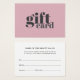 Elegant customizable gift certificate card design for beauty or fashion related professionals. Simple natural design with dusty pink/grey colors.