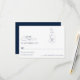 These RSVP cards feature a crisp white background with navy blue text. Simple eucalyptus spring line art adds a clean and natural touch. The layout is modern, minimal, and easy to read. This design pairs well with classic navy blue and greenery wedding themes, offering a fresh and elegant look for your stationery suite.
