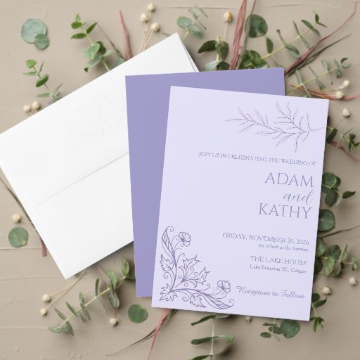 Set a beautiful table at your wedding reception with this elegant Lavender Botanical Wedding Menu Card - a dreamy, minimalist design featuring delicate botanical line art in soft lavender tones, perfectly coordinated with your complete AK Aurora Lavender Botanical wedding stationery suite.