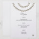 Add a touch of sophistication to your wedding reception with this elegant pearl-themed menu card. Featuring a minimalist design with delicate pearl accents, this menu card beautifully showcases your carefully curated wedding meal. From starters to desserts, let your guests anticipate each delicious course with this stylish and refined menu. Perfect for any wedding theme that exudes elegance and grace.
