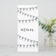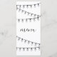 Elevate your reception tables with this elegant minimalist wedding menu card, beautifully framed with delicate string lights for a soft, romantic touch. The clean black-and-white design pairs graceful script with classic serif typography, creating a refined and timeless presentation.