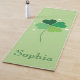 This yoga mat features a serene, minimalist design inspired by nature and balance. The soft green background creates a calming visual experience, while the delicate four-leaf clover motif adds a gentle symbol of harmony, luck, and positive energy. Small star accents subtly highlight the design, giving it a light, graceful touch without feeling busy.