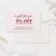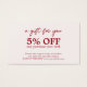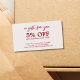 Elegante modelo de tarjeta de cupón de personalizable completo. Esta tarjeta es perfecta para tiendas online o salones. Recompensa a tus clientes con esta tarjeta de cupón.