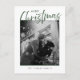 Una moda, tarjeta de vacaciones minimalista con tipografía atemporal con "Feliz Navidad" en letras a mano contra un fondo blanco limpio y simple, acentuado por un acento verde festivo. Personalizar la foto, el mensaje de vacaciones y tu nombre para un toque personalizado. Este diseño moderno y minimalista te hará destacar en esta temporada de vacaciones. La imagen mostrada es para referencia y se puede reemplazar con su propia foto. La imagen de marcador de posición muestra a una pareja joven en escala de grises monocroma clásica, añadiendo un toque de elegancia.