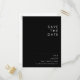 Esta tarjeta postal moderna minimalista | negra para guardar la fecha es perfecta para tu boda boho con clase. Su diseño abstracto simple y único acompañado por una tipografía minimalista contemporánea y una paleta de colores en blanco y negro le da a este producto un toque de lujo formal elegante mientras mantiene un estilo bohemiano chic y simple. Puedes dejarla tal como está o personalizarla con arte o gráficos de tu elección. También puedes ver otros productos dentro de esta colección para unir toda tu boda.