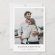 Esta sencilla y elegante boda fotográfica, que permite guardar la plantilla de la tarjeta de fecha, incluye sus nombres, fecha y lugar de boda bajo su foto. Puede elegir cambiar el tipo de letra, puntuación o color utilizado para varios elementos de texto de este diseño en la parte frontal y/o posterior. ¡Es totalmente editable! Por ejemplo, puede optar por dar un color diferente al texto del nombre, o por eliminar algo o cambiar un campo de texto por completo con un mensaje diferente. El color predeterminado del texto en ambos lados es negro. En la parte de atrás elegimos un orden atípico para la información, colocando el texto 'GUARDAR LA FECHA' después del texto 'PARA EL BODA DE', que le da un camino menos recorrido encanto. Puede modificarlo cambiando el texto de cada uno de estos campos de texto e introduciendo manualmente la pieza que desea colocar en el orden en que desea mostrarla. Ponemos el fondo en la parte posterior como transparente para que el color del papel sirva simplemente como tono base. Puede cambiar esto fácilmente seleccionando uno de los colores básicos de las herramientas de edición, introduciendo un número de color si tiene un color específico en mente que encontró en su investigación, o mirando la herramienta del espectro de colores y eligiendo algo a la vista. Hemos hecho que mate sea la opción de papel predeterminada, pero puede cambiarla a -semi-brillante si prefiere esa apariencia. Esperamos que disfrute experimentando con este diseño limpio y contemporáneo, ahorre el diseño de la plantilla de fecha y lo haga único suyo con las herramientas de diseño intuitivo, su foto favorita y su inspiración. Tenemos una selección de otros minimalistas modernos guardar las tarjetas de fecha en varios formatos incluyendo una versión postal de este diseño, así que por favor, ¡eche un vistazo!