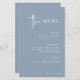 El boda azul, elegante y polvoriento, propone una carta sencilla y minimalista, pero muy elegante, gracias a la escritura blanca y moderna y al diseño depurado.