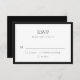 Negro y blanco simple minimalista con tarjeta de respuesta RSVP de boda fronteriza. Bloquear y bajar el texto tradicional funda dentro de un borde negro delgado. La espalda es negra. Para ajustar el diseño, haga clic en Personalizarlo, Editar texto y, a continuación, haga clic y arrastre las secciones de texto a las ubicaciones deseadas. Seleccione Ctrl para mover varias secciones a la vez.