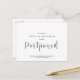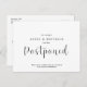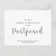 Este es el moderno diseño minimalista simple y limpio con el tema, en el tipo de letra Negro, invitación a fiesta de boda Postales reprogramadas (pospuestas/pospuestas) (pospuestas) . Es la manera perfecta y elegante de hacer la invitación reprogramada a sus amigos y familiares.