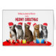 Una tarjeta de Navidades graciosos y lindos con 5 gatos sentados en fila usando sombreros de Santa. Las palabras que los Navidades Meowy están por encima de los gatos. Una tarjeta de Navidades para tu ministro,