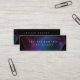 Moderna y colorida mancha de tinta sobre mini tarjetas de negocios negras. Se pueden personalizar el estilo y el color del tipo de letra del texto.