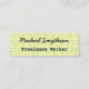 Minitarjeta De Visita Escritor escrito a mano en papel en línea amarilla