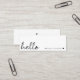 Un minimo diseño de mini tarjetas de visita con un elegante guión escrito a mano letra tipograhy cita "hola" emparejada con tu propio nombre y un simple corazón negro. Diseñado en un estilo mininalita moderno en blanco y negro depurado. El regalo o accesorio personalizado perfecto para cualquier época del año!