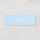 Plantilla sencilla y elegante para una tarjeta de visita. En un fondo de color azul pálido con el logo en un lado, hay texto personalizado en blanco en el frente y en la parte posterior. El nombre en la parte frontal tiene un estilo de script manuscrito, mientras que el texto restante tiene una fuente de estilo sans-serif clara para leer.