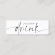 Minimalistas vales de bebida gratis en un elegante diseño en blanco y negro, con letra caligráfica que dice 'bebida'. Añada su logotipo, eslogan y sitio web a la parte posterior para hacer sus vales de bebidas para eventos de negocios personalizados.