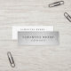 Moda y elegantes tarjetas de visita en un tamaño pequeño que ahorra papel, con letras negras clásicas en un fondo gris pálido adornado con hilos de luces falsas de cuerda de Relieve metalizado plateado. Añade la información de contacto completa a la parte posterior. Una elección única y elegante para cualquier ocupación; ejemplo mostrado para los esteticistas.