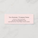 Una mini tarjeta de contacto rosa claro para promocionarse con elegancia... parte delantera: líneas de oro falsas con nombre y profesión personalizados; parte trasera: líneas de texto (nombre de negocio, teléfono, correo electrónico y dirección).