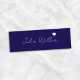 Color de fondo azul oscuro con campos para el nombre (estilo de letra de guión blanco), profesión, número de contacto, correo electrónico y dirección... para una elegante primera impresión... con la imagen de un pequeño corazón de amor por encima del nombre.