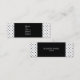 Tarjeta de negocios con patrón de puntos de polka en blanco y negro. La polka negra se pega sobre un fondo blanco.
