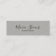 Mini tarjeta profesional elegante plateada con nombre general en un lujoso estilo de Moda seguido de especialidad en el frente, nombre completo del guión, carrera e información en la parte posterior.