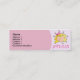 ¡Esta tarjeta flaca linda del perfil es el accesorio social perfecto para usted y su niño! Su tamaño delgado remete fácilmente lejos la su bolsa de pañales, la mochila del niño o el monedero. El ideal para compartir el Info de su niño al arreglar el juego fecha, los sleepovers, o apenas fabricación de nuevos amigos. Estas tarjetas lindas ofrecen un ilustracion caprichoso, infantil de una princesa rubia bonita en un fondo rosado. Y el mejor de todos, cada tarjeta del perfil es completamente adaptable. ¡Comience a personalizar ahora!