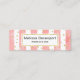 Mini tarjetas de visita con un elegante patrón. Con rayas verticales de color rosa rubor y purpurina de confeti de oro falso esparcido por todos lados. Un rectángulo blanco con un borde falso de Relieve metalizado dorado sobre la parte superior, con tu texto personalizado dentro.
