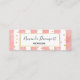 Mini tarjetas de visita con un elegante patrón. Con rayas verticales de color rosa rubor y purpurina de confeti de oro falso esparcido por todos lados. Un rectángulo blanco con un borde falso de Relieve metalizado dorado sobre la parte superior, con tu texto personalizado dentro.