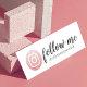 Difunde la voz y promueva su presencia en los medios sociales de Instagram con nuestra tarjeta de visita en instagram de las redes sociales. El diseño presenta un diseño moderno y minimalista con el logotipo de Instagram que se muestra en blanco sobre un elegante fondo de círculo de imitación rosa pálido. "Sígueme" se muestra en una tipografía de escritura de pincel elegante y se personaliza con tu nombre de usuario/identificador de redes sociales. El lado inverso está diseñado en un elegante color rosa claro con información de contacto. Diseño original creado por Moodthology.