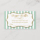 Elegante menta verde y oro Diaper Raffle ducha de bebé inserte tarjetas para niños o chicas duchas de bebé. Invite a sus invitados a ganar un premio llevando pañales a la ducha de bebé! Con rayas verdes y blancas de menta con marco de texto purpurina dorado y texto dorado.