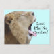 Foto original de un león macho con la boca abierta, y su lengua saliendo y "¡Mira Mamáes, no hay cavidades!" en alto y audaz tipo de letra que explota justo al lado de su boca abierta mostrando sus grandes dientes. El fondo azul claro se puede cambiar fácilmente a cualquier color. Haga clic en el personalizar y luego en el color para cambiarlo. Una postal perfecta y divertida para las oficinas de dentista para los recordatorios de citas dentales.