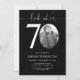 Celebra tu cumpleaños número 70 con estilo atemporal usando esta invitación negra de Look Who 70! Con un diseño moderno y elegante, esta invitación negra es perfecta para los que prefieren la simplicidad con un toque de elegancia. Personalizable completo, puede añadir fácilmente los detalles de su fiesta para crear una invitación personal y sofisticada que marca el tono para una elegante celebración de cumpleaños 70.