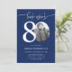 Celebra tu cumpleaños número 80 con un estilo atemporal usando esta mirada azul marino ¡Quién es la invitación del 80! Con un diseño elegante y moderno, esta invitación azul es perfecta para los que prefieren la simplicidad con un toque de elegancia. Personalizable completo, puede añadir fácilmente los detalles de su fiesta para crear una invitación personal y sofisticada que marca el tono para una elegante celebración de cumpleaños número 80.