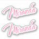 Nombre Miranda en letra cursiva en bonito rosa x2. Dos copias del nombre.