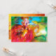 Personaje colorido, caprichoso y vibrante de máscara veneciana. Una hermosa y sofisticada mujer rubia está sentada con una rosa roja y una máscara de plumas en mano con telas doradas y fucsia brillantes de un disfraz de baile de máscaras barroco con plumas y un perro. Pintura en acuarela con colores brillantes en amarillo, azul, rosa, verde, destellos dorados y hoja de plata, inspirada en personajes de la Comedia del Arte (Commedia dell' Arte), Carnaval de Venecia y máscaras de plumas venecianas. Este diseño fresco y artístico es perfecto para bodas, ceremonias nupciales, fiestas de compromiso, dulces 16, fiestas de cumpleaños de quinceañera, fiestas de disfraces de Halloween, bailes de disfraces, compromisos románticos, anuncios de "save the date", fiestas de oficina, reuniones