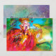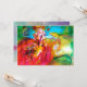 Personaje colorido, caprichoso y vibrante de máscara veneciana. Una hermosa y sofisticada mujer rubia está sentada con una rosa roja y una máscara de plumas en mano con telas doradas y fucsia brillantes de un disfraz de baile de máscaras barroco con plumas y un perro. Pintura en acuarela con colores brillantes en amarillo, azul, rosa, verde, destellos dorados y papel de plata, inspirada en personajes de la Comedia del Arte (Commedia dell'Arte), Carnaval de Venecia y máscaras de plumas venecianas. Este diseño fresco y artístico es perfecto para bodas, ceremonias nupciales, fiestas de compromiso, dulces 16, fiestas de cumpleaños de quinceañera, fiestas de disfraces de Halloween, bailes de disfraces, compromisos románticos, anuncios de "save the date", fiestas de oficina, reuniones