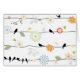 Mirlos que se sientan en un alambre rodeado por las flores bonitas - sensación del vintage.