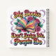 Un diseño retro vibrante y colorido muestra un libro abierto, rosas, formas de media luna y estrellas. El texto en negrita dice: "Mis libros no me juzgan, la gente sí". Este diseño único está disponible en una amplia gama de productos.