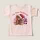 Mi primera Navidad, Cute Candy Cane Bear Modern T-Shirt, presenta una linda acuarela de Navidades con un sombrero de Santa con un bastón de caramelo y regalos. El texto "Mi primera Navidad" está escrito con letras rojas en tipografía de escritura caligráfica. Perfecto para bebés para Navidades, duchas para bebés o regalos de vacaciones. Diseñado por ©Evco Holidays www.zazzle.com/store/evcoholidays