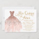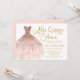 Invitación rosada y dorada de "Mis Quince Años" con vestido rosa.