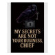 Añade un toque de misterio y actitud a tu espacio con este audaz poster gótico. Con un cuervo negro encaramado sobre una cerradura, con una llave colgante y la sorprendente frase "Mis secretos no son asunto tuyo, jefe". Arte mural perfecto para los amantes de la estética oscura, de la brujería y de la decoración gótica de la casa.