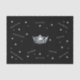 Este papel de tejido se muestra con una huella de celebración de las estrellas, textos de menor tamaño deseando buena suerte, estás en llamas, eres el más grande, etc. esparcidos por todas partes en gris suave y Taupe sobre un fondo negro con felicitaciones más grandes de color gris plateado y una brillante impresión de corona plateada. Personalice este artículo o compre tal y como está diseñado.